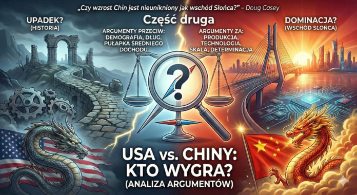 Patrząc na obecny wycinek czasowy i ignorując trendy można odnieść wrażenie, że Chiny rywalizują ramię w ramię ze Stanami Zjednoczonymi, albo, że Stany Zjednoczone nadal mają istotne przewagi i mogą wygrać tę rywalizację, ale przyjmując szeroką perspektywę spekulanta (na podobieństwo Raya Dalio) i patrząc na trendy, można dostrzec wyraźnie, że obecny stan równorzędnej rywalizacji jest jedynie przejściowy i jeśli nie zdarzy się cud i wielkie procesy cywilizacyjne, społeczno-polityczne, geopolityczne i gospodarcze nie zmienią się diametralnie, to Chiny są na drodze do zwycięstwa cywilizacyjnego, gospodarczego, technologicznego i do stania się nowym globalnym hegemonem.