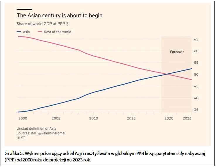 W następnym punkcie przyjrzymy się perspektywom ekonomicznym dla Azji, na razie chcę zostawić Czytelnika z myślą, że nie tyle wzrastają same Chiny, co cała Azja, a Chiny są po prostu jej najważniejszą częścią. Dla tych z Czytelników, którzy chcieliby zagłębić się w analizę historyczną 800-letnich cykli cywilizacyjnych i w pełniejszą argumentację w jaki sposób Azja jako całość wyprzedza Zachód (np. w liczbie największych miast, liczbie najwyższych budynków, i w innych aspektach) odsyłam do mojego nagrania na Nam Zależy na ten temat.
